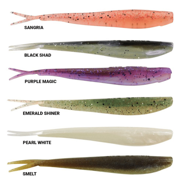 Su forma comprobada y extremadamente popular funciona a la perfección como tráiler de jig, en montajes de spinner, drop-shot o cualquier montaje que trabaje cerca del fondo. La cola dividida proporciona una presentación sutil y delicada que resulta letal para crappie, panfish, black bass, lucioperca y trucha.