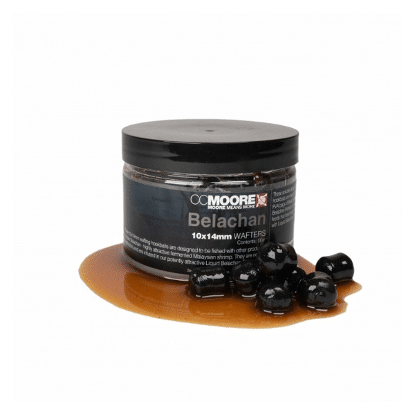 CC MOORE Belachan Wafters son cebos de anzuelo en forma de mancuerna, de color gris oscuro, elaborados a mano y cuidadosamente impregnados con nuestro exclusivo compuesto líquido Belachan. Su diseño flotante y equilibrado (10x14mm) ofrece una presentación irresistible, con un aroma profundo y salado que resulta altamente atractivo para las carpas durante todo el año.
