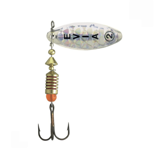 La cucharilla Evia Aspen Mod. 13B con reflejos está especialmente diseñada por Evia para la pesca de truchas en río. Esta cucharilla Evia incorpora una pala en forma de hoja de olivo, ideal para corrientes fuertes, ya que ofrece menor resistencia al agua que una cucharilla de pala ancha, garantizando una natación estable y efectiva.