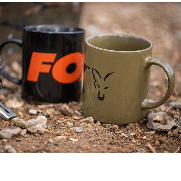 Presenta un acabado en color negro con el logotipo Fox en naranja, aportando un estilo inconfundible. Su capacidad de 350 ml la hace perfecta para café, té o cualquier bebida caliente mientras descansas entre lances.