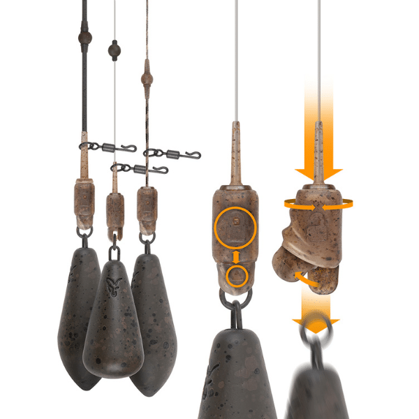 El plomo puede fijarse de forma segura o configurarse para liberación en caso necesario, simplemente girando el manguito 180 grados, lo que mejora la seguridad del pez en fondos complicados.
