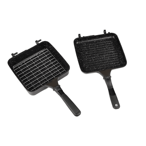 Las dos mitades pueden separarse, funcionando como dos sartenes independientes para preparar varias recetas a la vez.