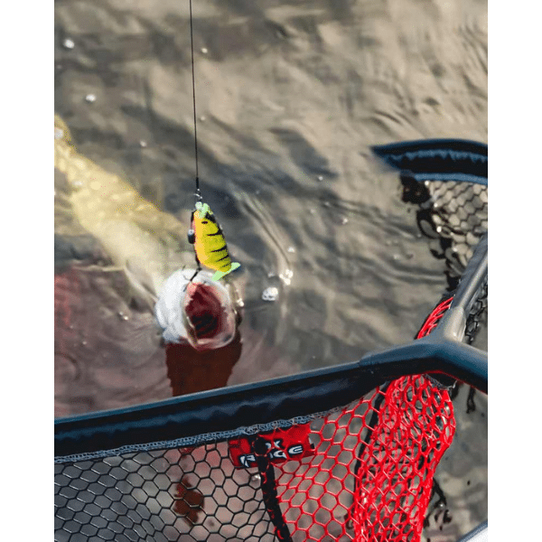 La malla profunda recubierta de goma roja y negra es totalmente fish friendly, evitando daños en las escamas y reduciendo enganches con los señuelos. Su mango ergonómico proporciona un agarre cómodo y seguro incluso con las manos mojadas.