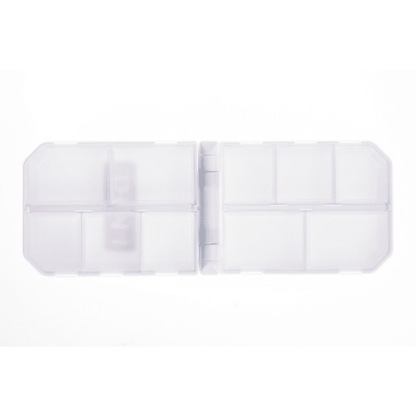 Su tapa transparente permite una rápida visualización del contenido, mientras que su cierre seguro evita aperturas accidentales. Gracias a su tamaño reducido, es perfecta para llevar en el bolsillo, en el maletín de herramientas o en cualquier caja de almacenamiento mayor.