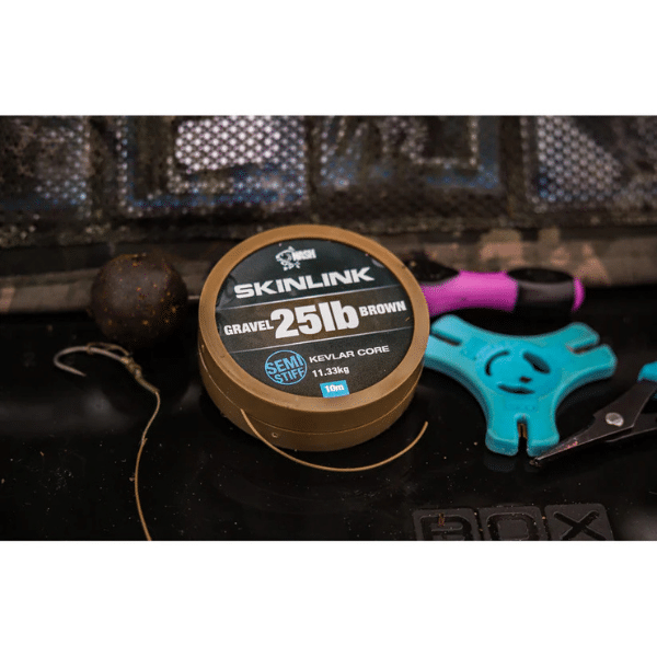 El NASH Skinlink Semi-Stiff 35lb 10m Gravel es uno de los bajos de línea recubiertos más avanzados del mercado, diseñado para ofrecer máxima resistencia, discreción y rendimiento en las situaciones más exigentes de carpfishing.