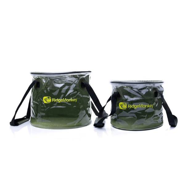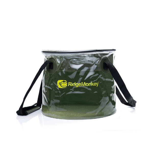 Fabricado con PVC reforzado de alta calidad, costuras soldadas por alta frecuencia y un anillo superior rígido, el RidgeMonkey Collapsible Bucket combina resistencia, estabilidad y durabilidad. Además, incluye una correa de asa con cierre de velcro y un anillo en D externo, lo que permite un vertido cómodo y seguro, incluso con el cubo lleno.