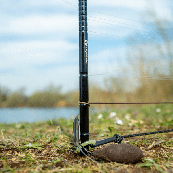El cuerpo de aluminio anodizado cuenta con ranuras de retención que facilitan la sujeción del sedal, ofreciendo amplios puntos de sujeción para enrollarlo de forma uniforme y ordenada sin que se resbale. Mecanizado con precisión y con un perfil liso, el sedal se desenrolla fácilmente una vez enrollado. Tres ranuras más grandes en la base de los palos permiten fijar el cordón de medición, dependiendo de la profundidad de inserción. La estaca de tierra está fabricada en acero inoxidable, mucho más denso que el ligero cuerpo de aluminio, para aumentar la resistencia del palo y optimizar la penetración, permitiendo que la punta endurecida se clave fácilmente en el suelo.