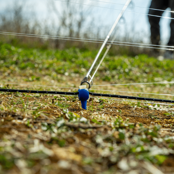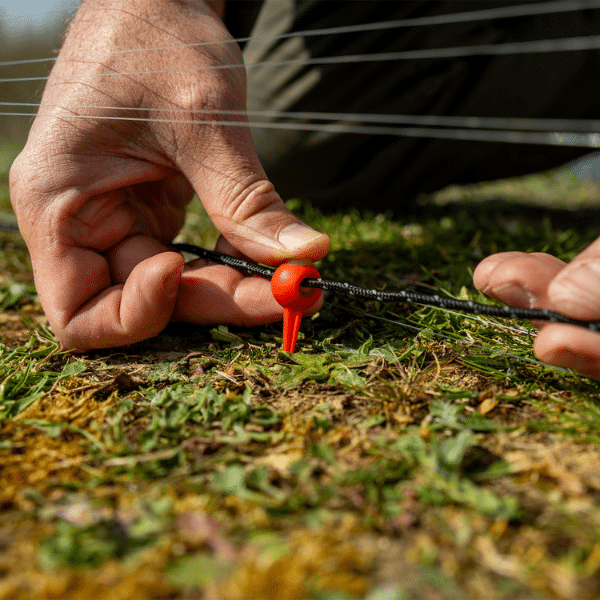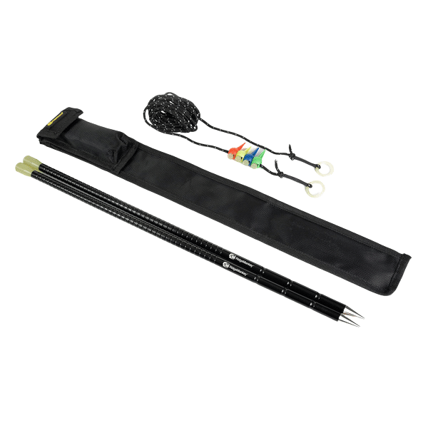 El cordón de medición permite colocar las varillas a una distancia constante de 3,6 m (12 pies) en todo momento. Cuenta con marcadores Nite Glo ajustables de colores únicos con puntas puntiagudas que se deslizan fácilmente por el cordón hasta la distancia requerida para cada varilla, antes de insertarse firmemente en el suelo.